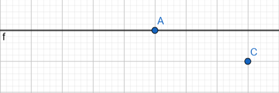 3. GEOGEBRA ծրագրով գծիր f ուղիղ, նշիր երկու կետ, որոնցից մեկը գտնվում է (պատկանում է) այդ ուղղի վրա, իսկ մյուսը չի գտնվում։