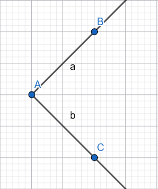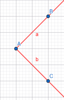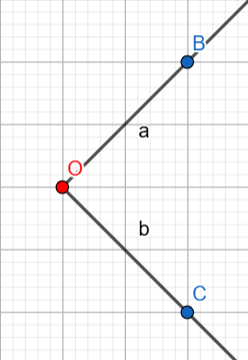 11.GEOGEBRA ծրագրով գծիր երկու փռված անկյուններ, գագաթներից մեկը գրիր О, մյուսը՝ А։
