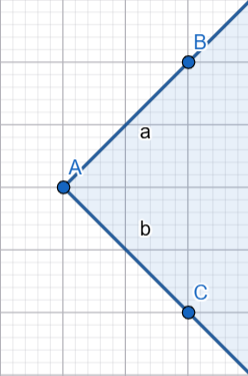 7. GEOGEBRA ծրագրով գծիր չփռված անկյուն, նշիր ներքին և արտաքին տիրույթները։